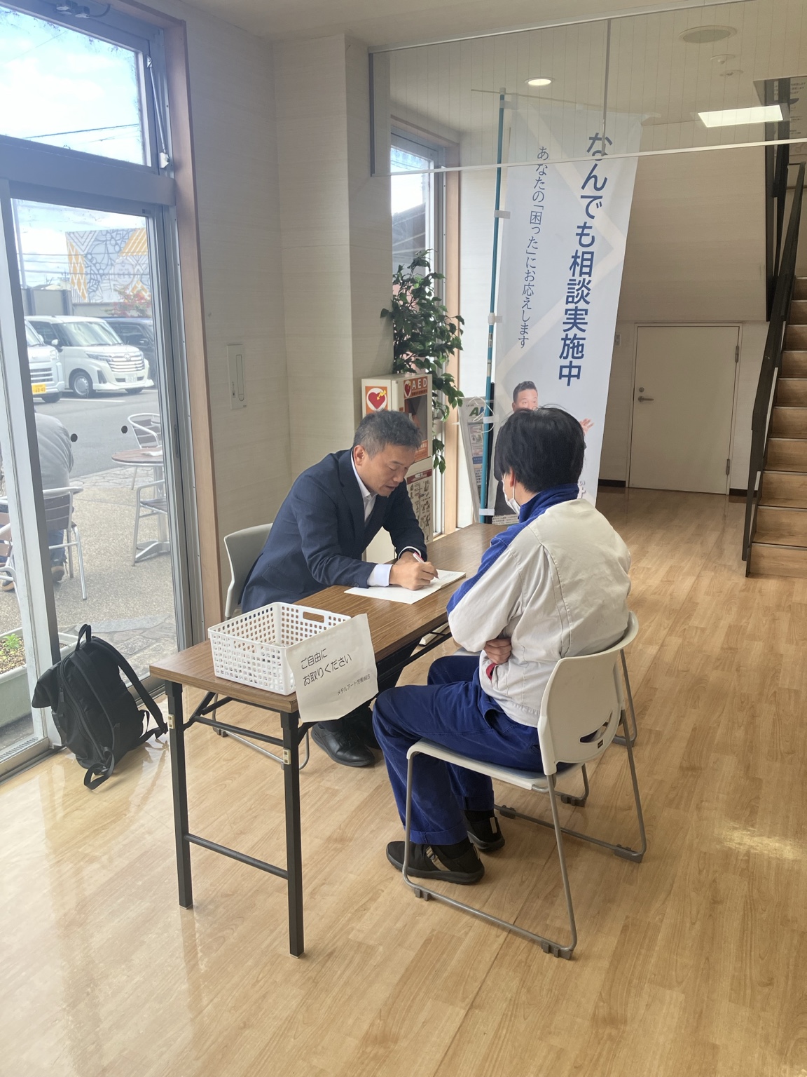 草津市内で事業をしておられるメタルアート様にて、お昼休みの時間を活用し、従業員の皆さまを対象とした「何でも相談会」を実施しました。